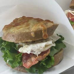 フランス産のライ麦パンをふわっとパンペルデュにして、ベーコン、レタス、トマト、チーズ、目玉焼きを挟んでボリュームたっぷりに仕上げております。また新商品の舌の上でとろける 濃厚プリン(ショコラ)も販売し...