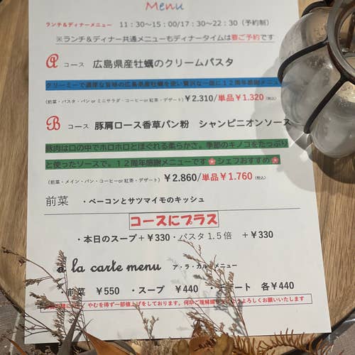 ディナー 17:30 〜 22:30 L.O. 21:30 ディナータイムは完全予約制ですので事前にお電話でのご予約お願いいたします☎☏